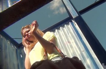 Русская девушка с пышными формами надевает модный купальник в пляжной кабинке. В это время за ней скрытно наблюдает местный извращенец. Он подсматривает, как девушка снимает лифчик и трусы. Когда девушка переоделась, то заподозрила неладное и чуть было не заметила, подглядывание за своей персоной.